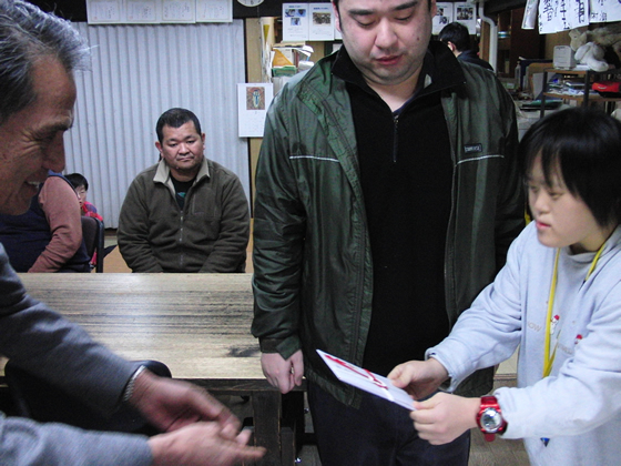 作業者責任者に任命された、お二人のかたに、手渡しし、お礼のお言葉をいただきました。