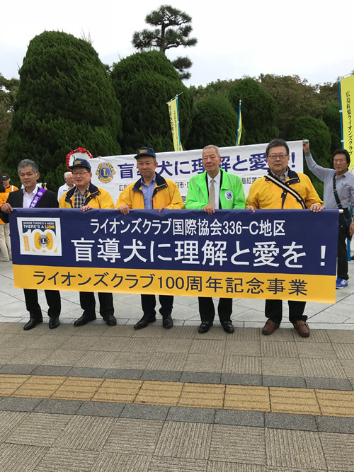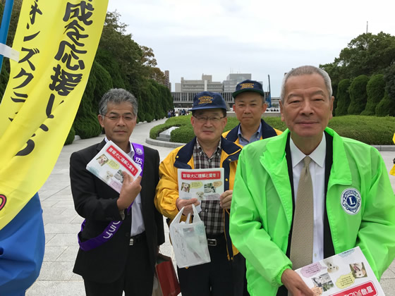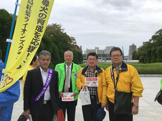 ライオンズクラブは広島市内11のクラブが参加し、本通りをパレードしながらチラシを配布して、パレード後の募金活動を行いました。