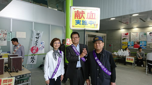 前日の雨に変わっての晴天でしたが、風が強く肌寒い中での献血活動でした。