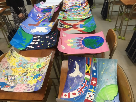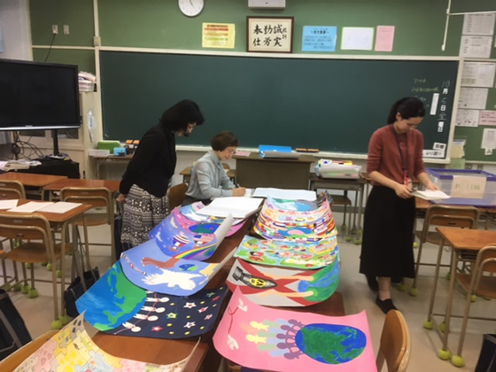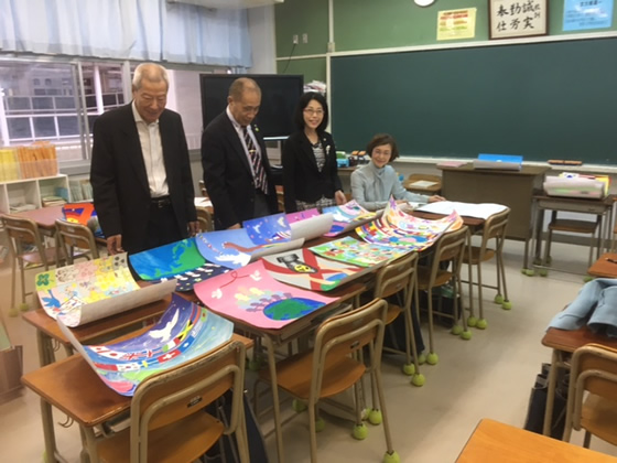 2018年10月4日(木)祇園中学校にお邪魔をして、1年生の生徒さんに書いていただいた平和ポスターの選考を行いました。