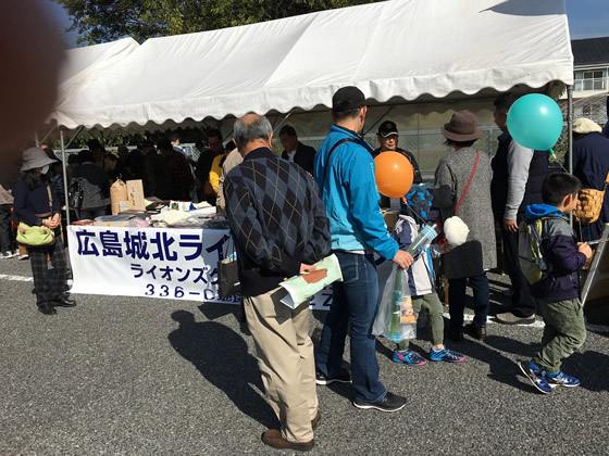 2018年11月4日 晴天の中、恒例の安佐南区民祭りにおいてチャリティーバザーを行いました。