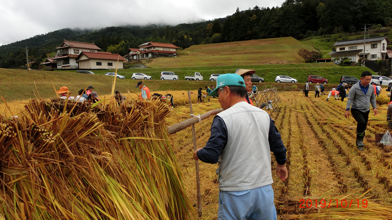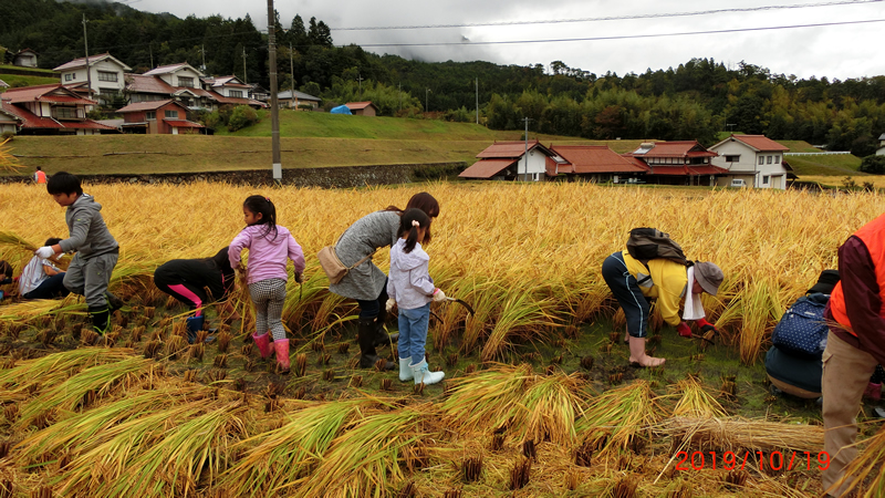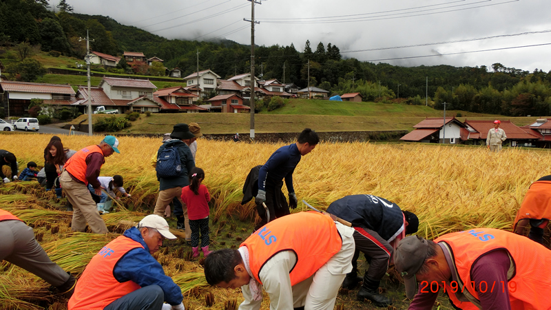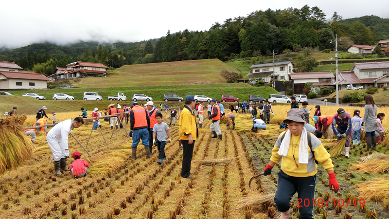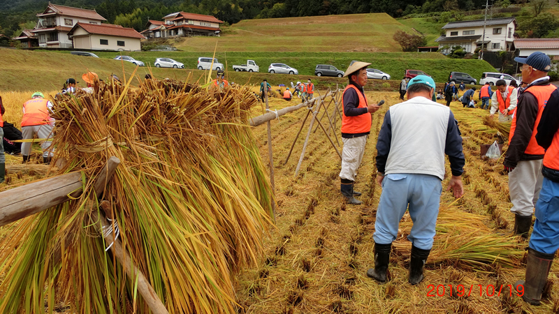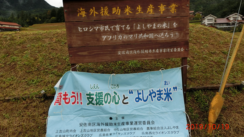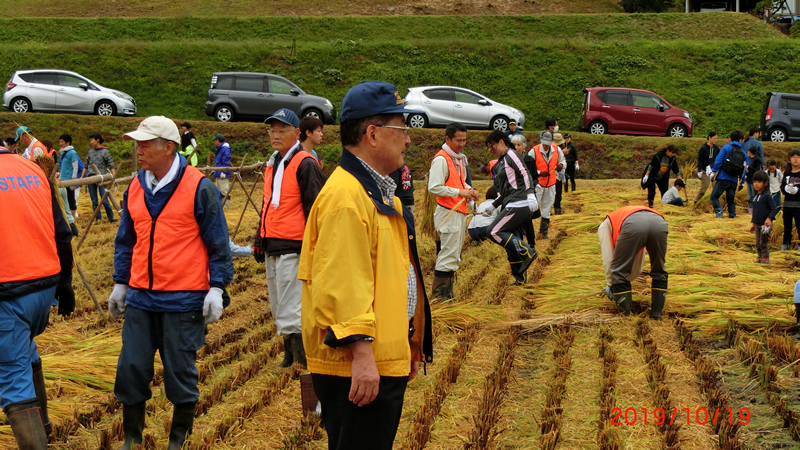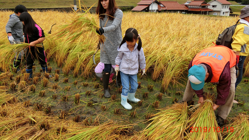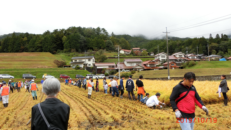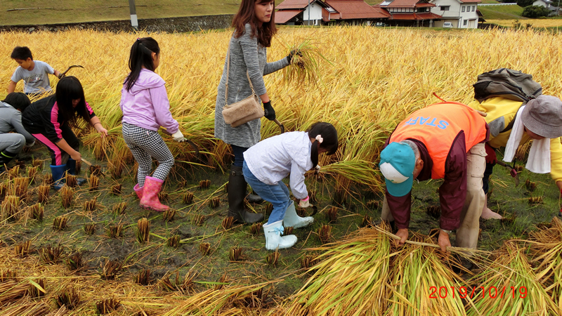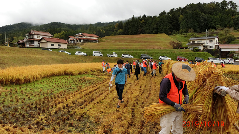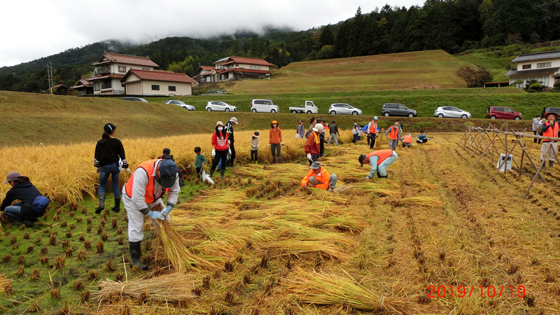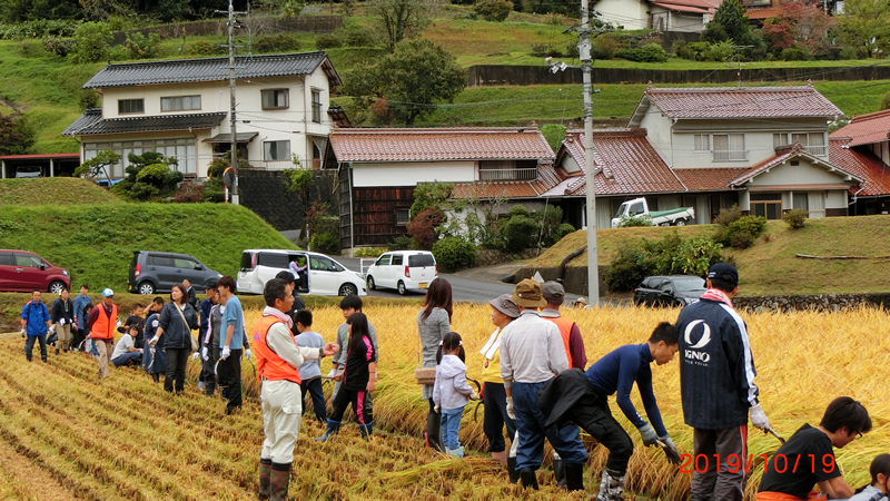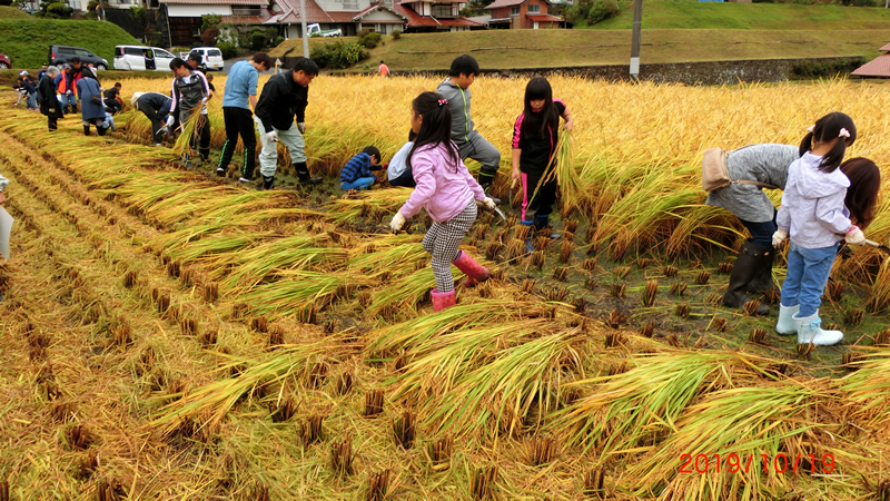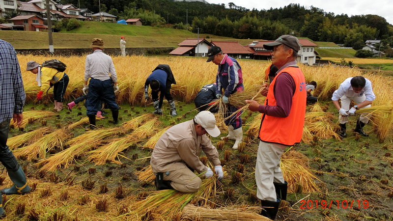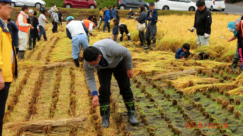 2019年10月19日(土)吉山地区において、第21回海外援助米支援事業の2019年度第3回目の活動(稲刈り)を行いました。