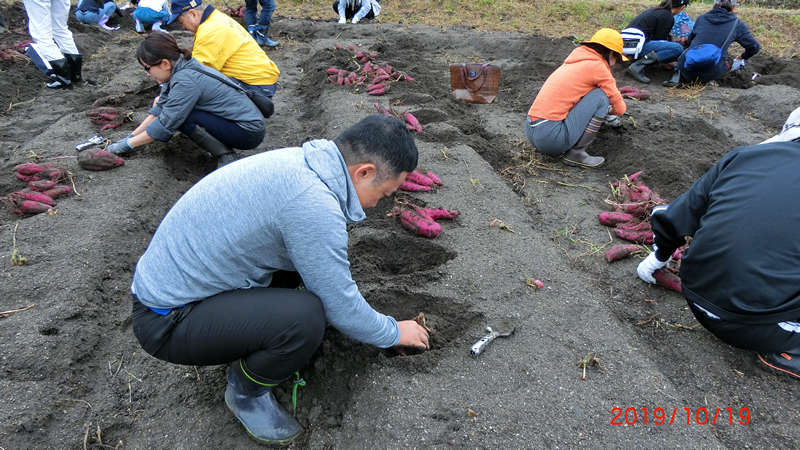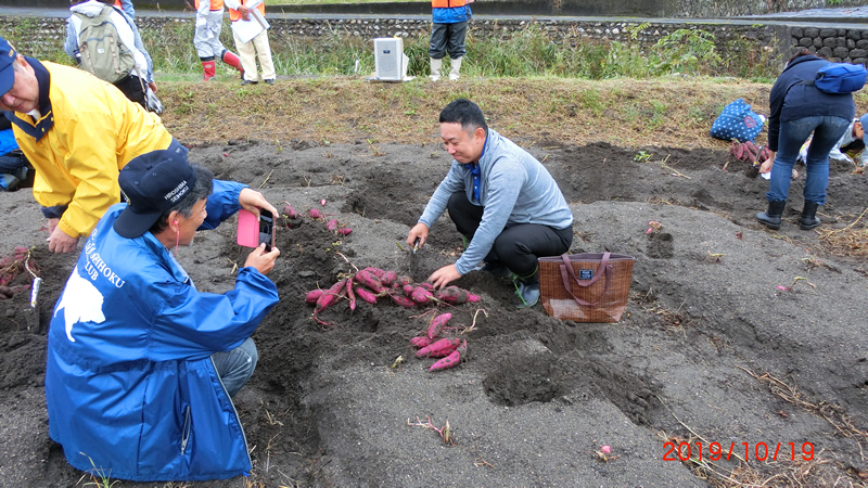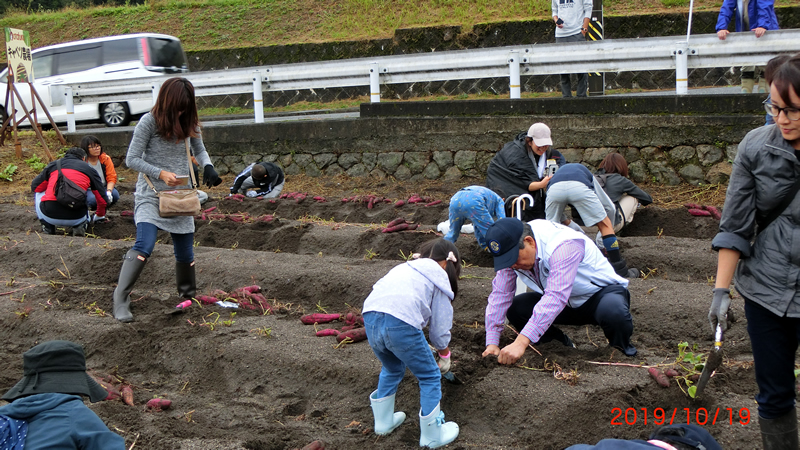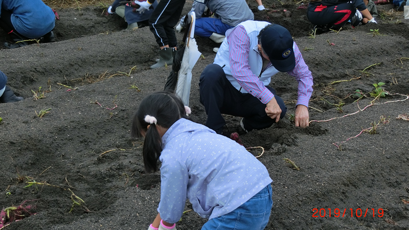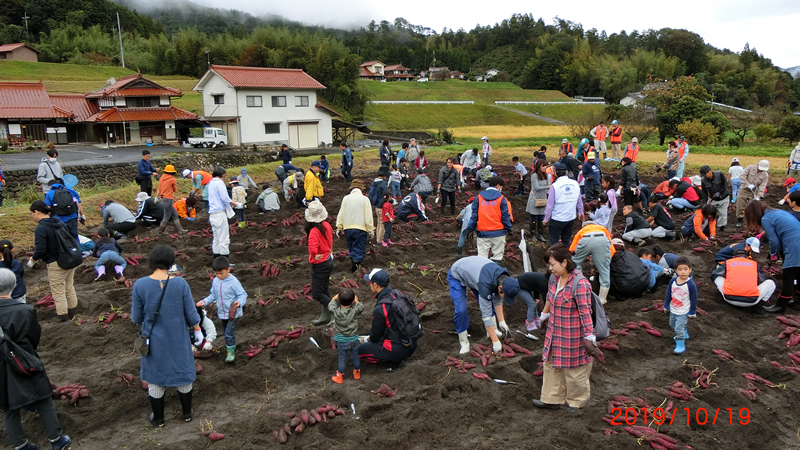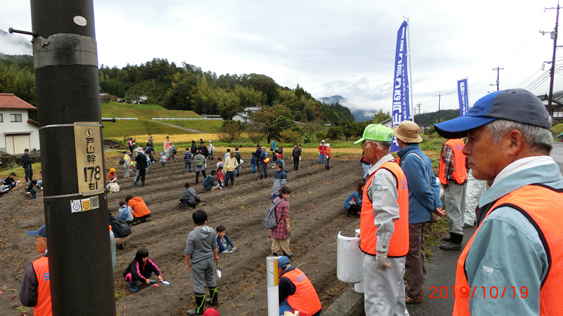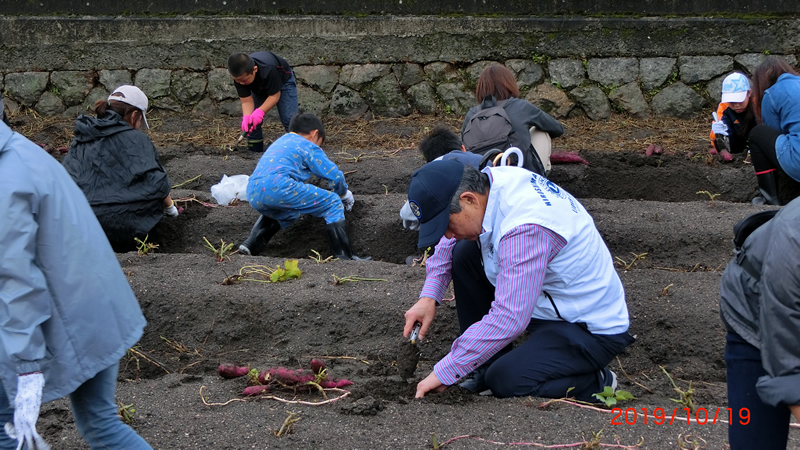 サツマイモのコンクールや、地区の皆様が早朝から準備してくださいました、新米で炊いたおにぎりと焼き芋の試食、地元の新鮮な野菜類の販売等で大賑わいの活動でした。