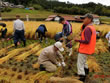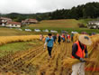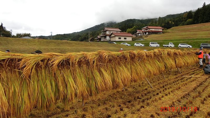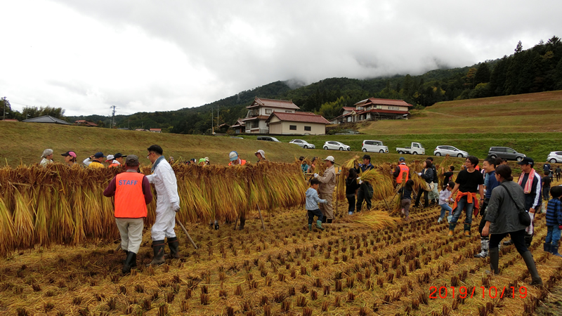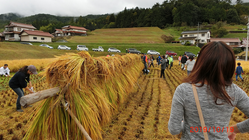 今年は雨の直後のため、刈り取った稲を稲ハデにかけて自然乾燥を行う昔ながらの取り入れ方を体験でき、参加されたお母さんと子供たちの良い思い出となったようです。