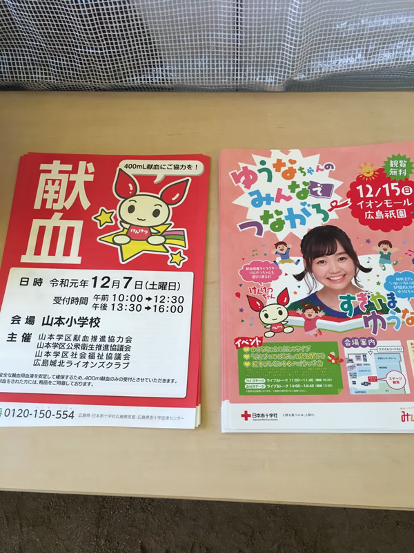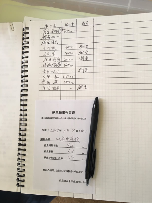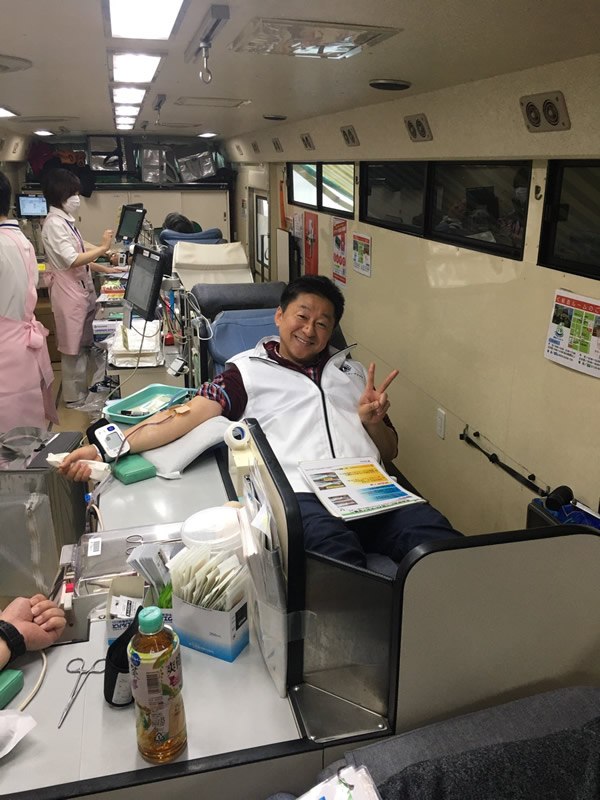 広島城北ライオンズクラブの関係者では、大里、藪、寺迫、永田、坂元の各会員と、銅金Lのお知り合いの大竹様、花木様、浅井様が献血をしてくださいました。
