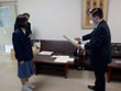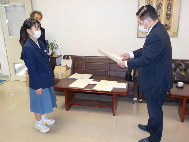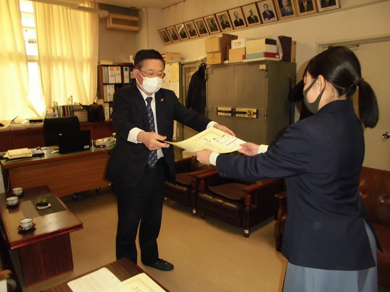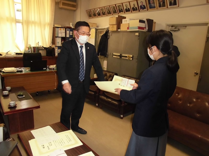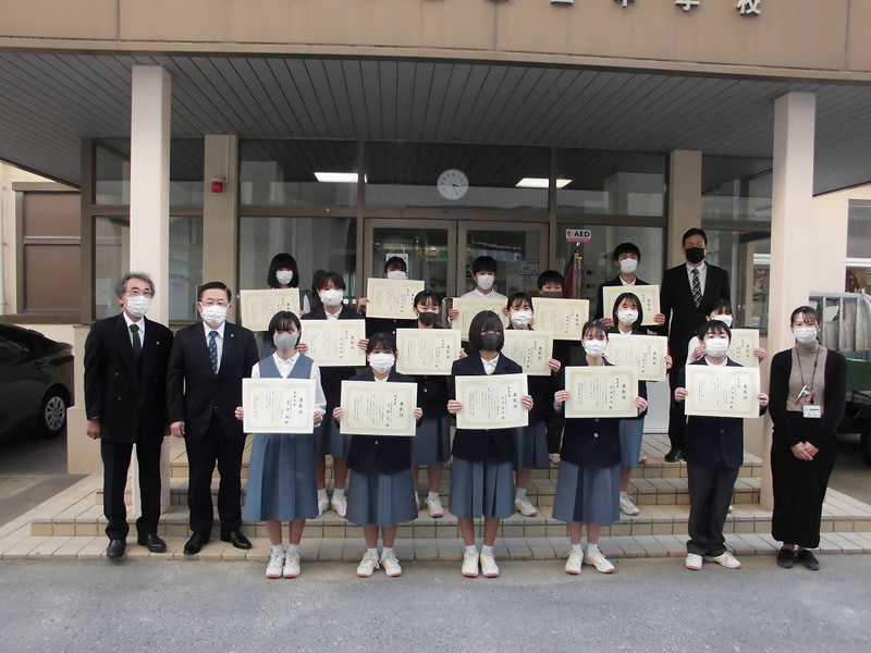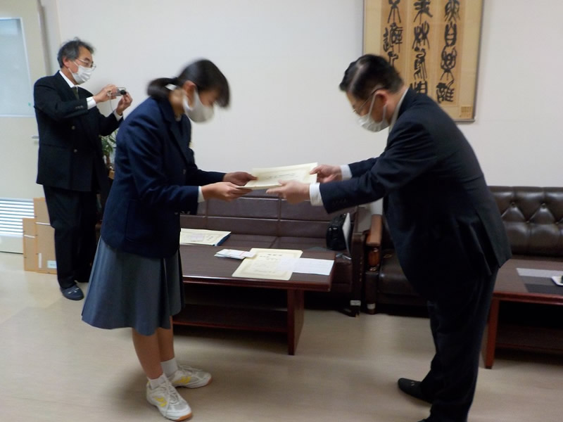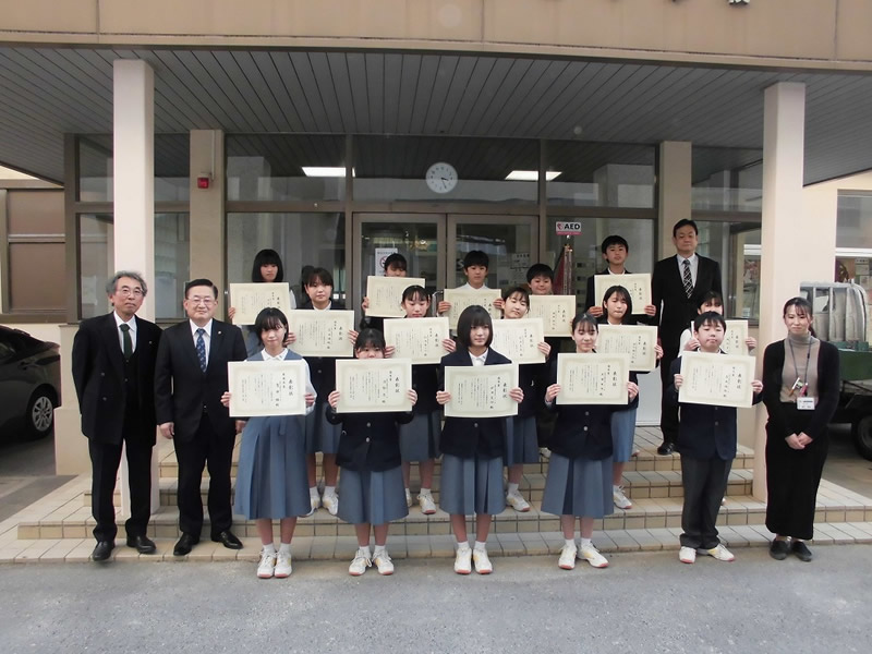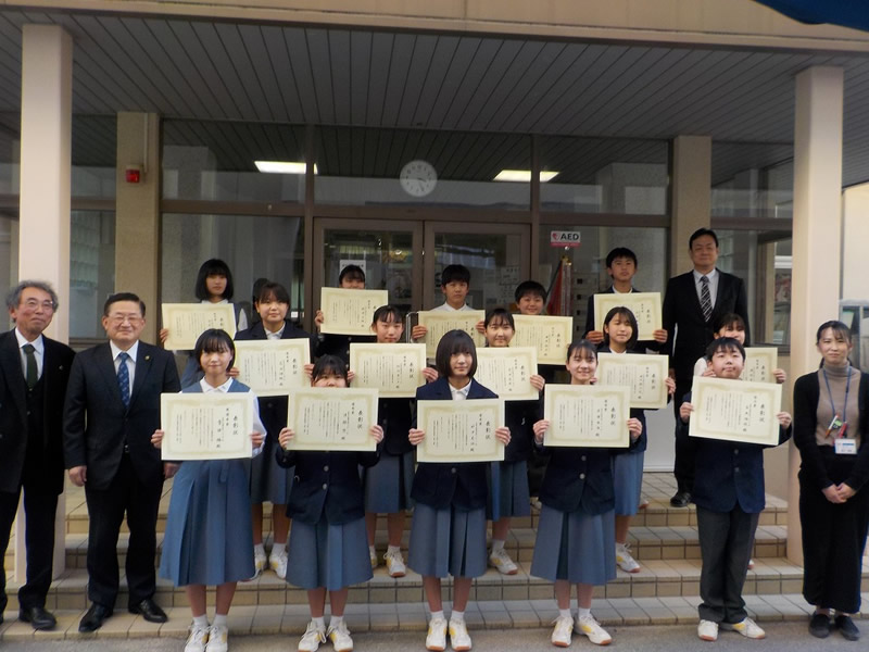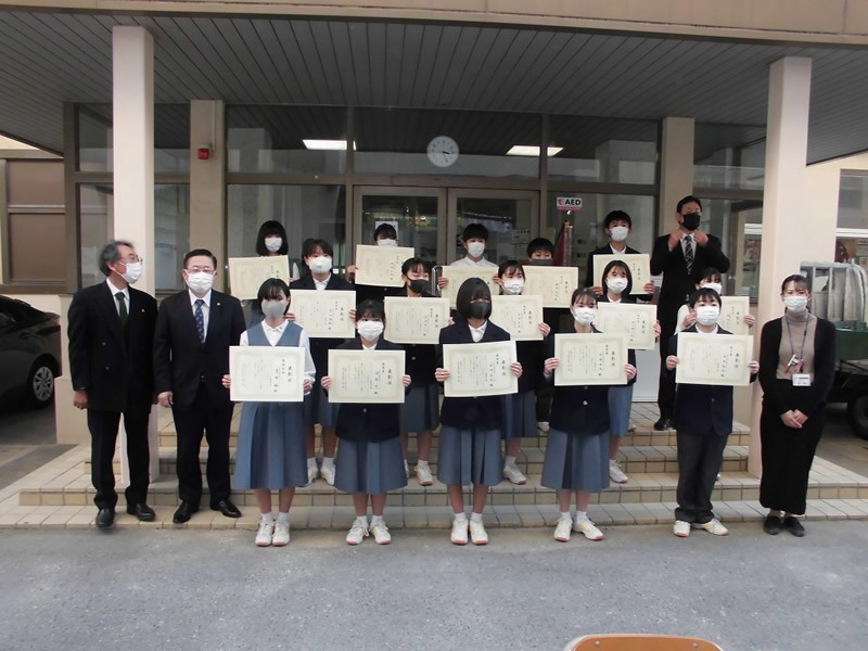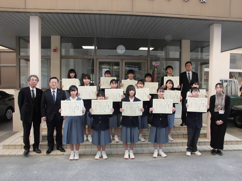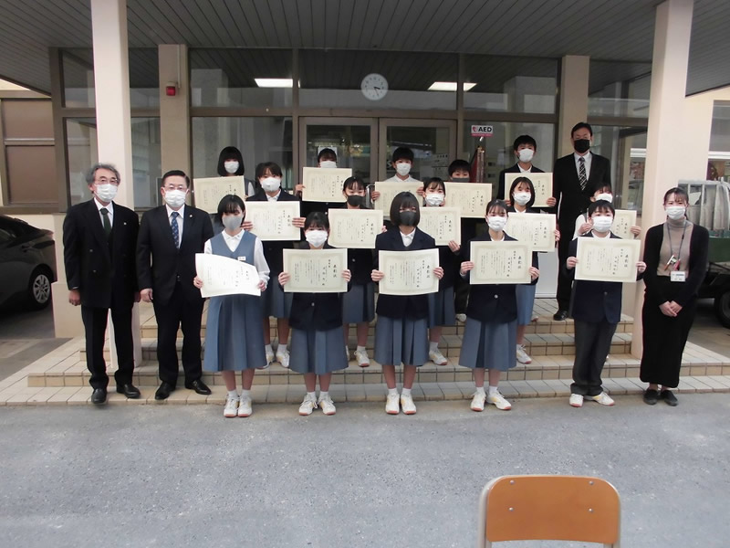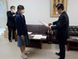 国際協会へ応募した最優秀賞と各クラス優秀賞並びに努力賞の各生徒さんに手渡しで表彰状と記念品を贈りました。