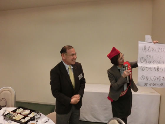 ちょうど、池田康彦ガバナーと久保行夫キャビネット幹事がご来訪くださいましたので一段と盛り上がり、楽しい例会となりました。