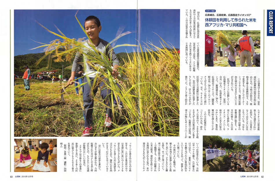 海外援助米事業が、LION誌2015年12月号のCLUB REPORTに掲載されました