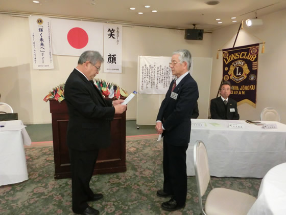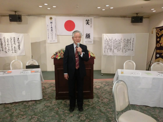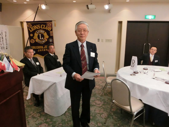 開会ゴング、君が代、ライオンズクラブに続いて、荒川Lへ黙祷をささげたのち、例会に入りました。
