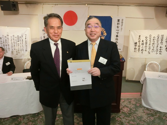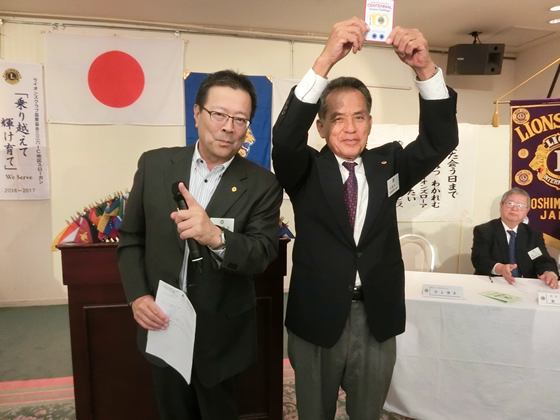 また、広島城北ライオンズクラブが行った、2015-2016年度の奉仕活動に対して、「2015-2016年度 100周年記念奉仕チャレンジ」のバナーバッジが贈られました。