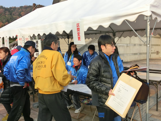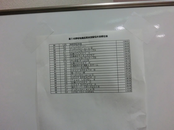 全70チームで交流を深めました。スタートごろから降り出した雨にも負けず、中冨こゆきちゃん(中冨会長のお孫さん)、前田誠一さん(前田Lのご子息)、藪L、柿田L、竹永L、寺迫Lの各選手の健闘により、広島城北ライオンズクラブは55位(1番繰り上げで54位)という成績でした。