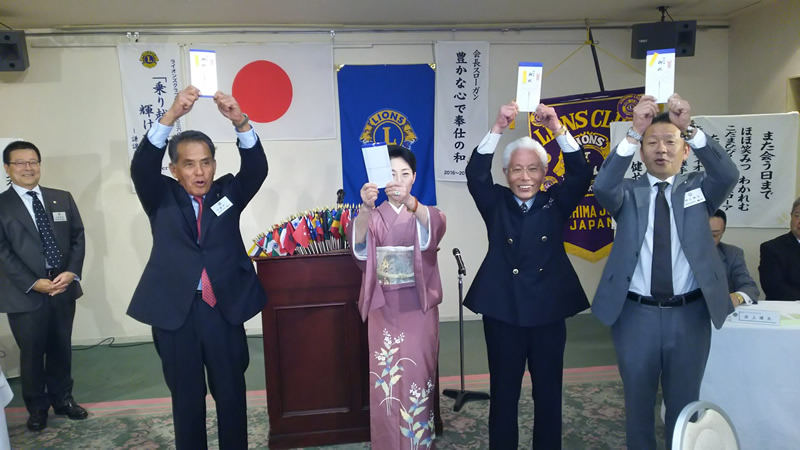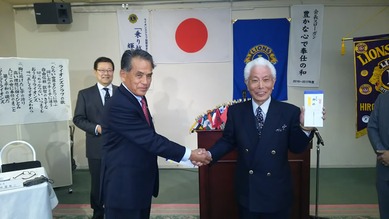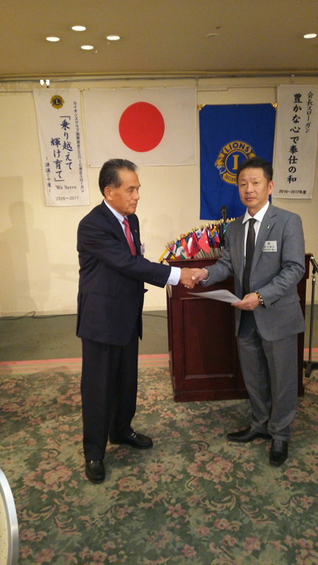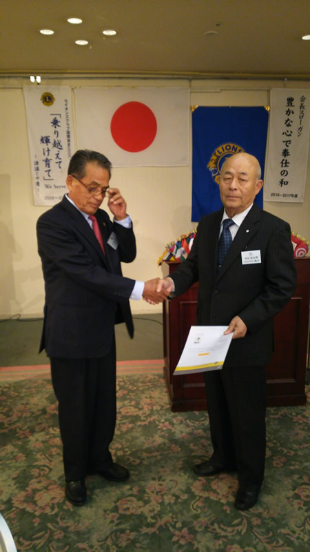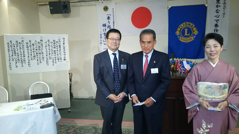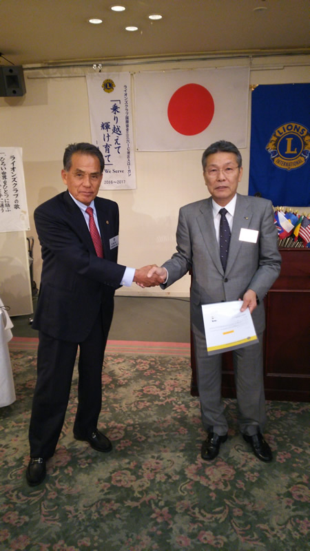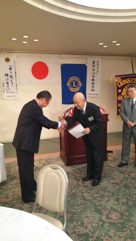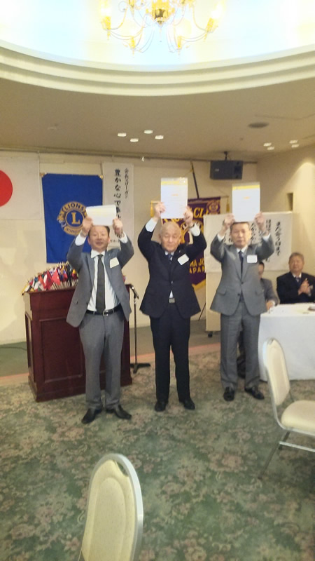 吉村Lに在籍35周年、前田Lに在籍20周年のモナークシェブロン賞、柿田Lに100周年記念 会員増強賞がそれぞれ伝達されました。
