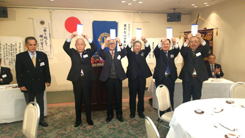 引き続き、第1195回例会を開催し、檜井Lの35周年モナークシェブロン賞伝達。
