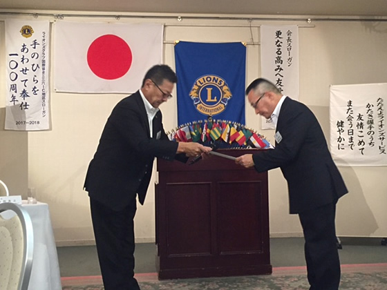 今回は久々に井上Lが出席され、2016~2017年度ライオンズクラブ国際協会336-C地区4R2Z ZCへの感謝状の伝達が行われました。