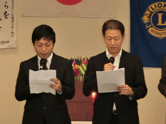 例会に先立ち、高橋 裕 様と永田 直 様の会員入会式を行いました。