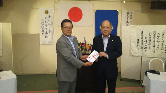 今日は、広島西ライオンズクラブの、大藪信彦会長と織田昭貴幹事をお迎えしての例会です。
