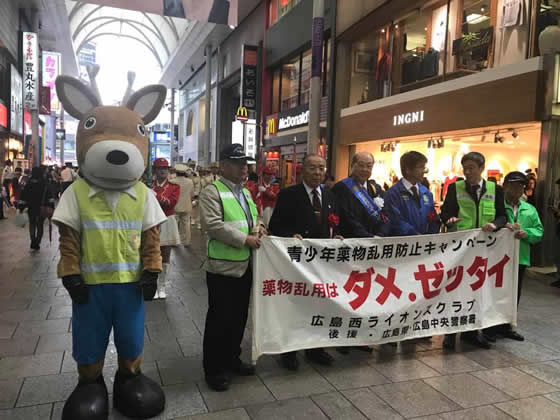 2017年10月21日 14時から本通りにおいて、広島西ライオンズクラブ主催の薬物乱用防止パレードに参加しました。