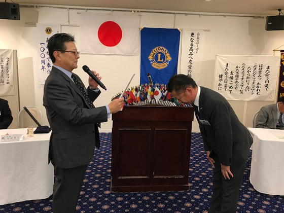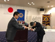 続いて、小畑Lに「薬物乱用防止教育講師認定証」、竹永Lに「日本アイバンク協会認定サポータ認定証」、柿田Lに「100周年記念 会員増強(ゴールド)」の伝達を行いました。