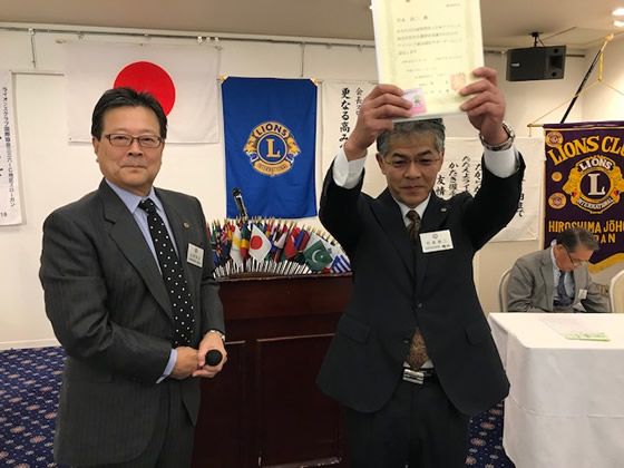 広島市道路交通局長という重責の御立場にも関わらず、クラブの50周年記念大会の成功に大きく貢献していただきました。谷山L大変お疲れさまでした。そしてありがとうございました。益々のご活躍をお祈りしております。