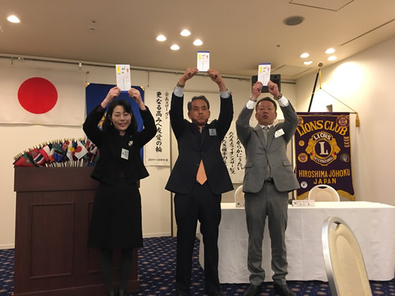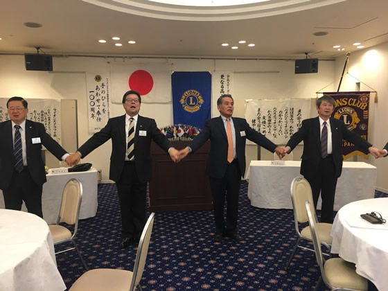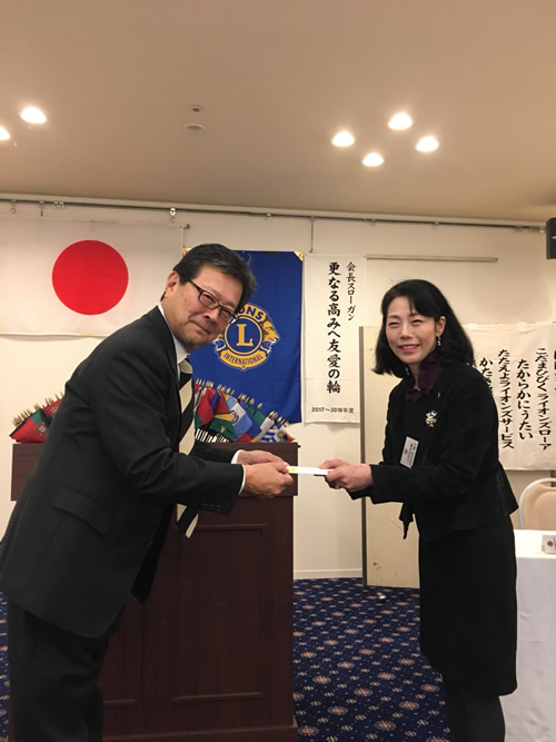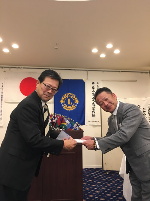 中富L、柿田L、小畑L、笠原Lのお誕生日のお祝いと、牛尾Lへモナークシェブロン賞(30周年)の伝達を行いました。