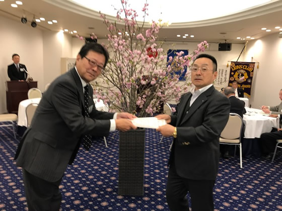 小畑Lにご尽力いただいた、さくらの花を囲んで雅やかな例会となりました。