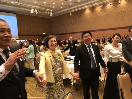 岸田議員、田邉副知事、松井市長、深山商工会長、安田336複合地区議長をお迎えしての厳粛な式典では今井ガバナーの年次報告につづき、長崎ガバナーエレクトの決意表明等が行われました。