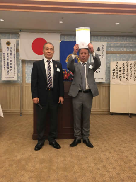 その後、小林会長、山田幹事、竹永会計から、336-C地区第65回地区年次大会の報告を受けました。