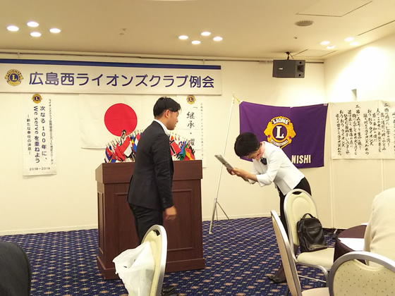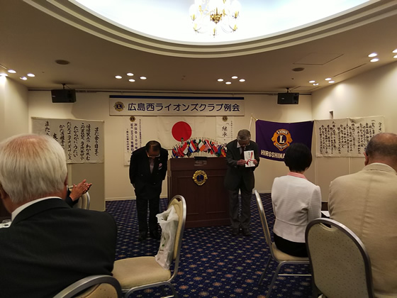 2019年6月13日、広島西ライオンズクラブ第895回例会にお邪魔いたしました。