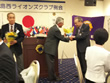 広島西ライオンズクラブから、両クラブへ感謝と友情の印の寄贈式、おやこアイデアソン実行委員会広島の少年少女達の未来を創る期待の夢基金へ100万円の寄贈をされました。
